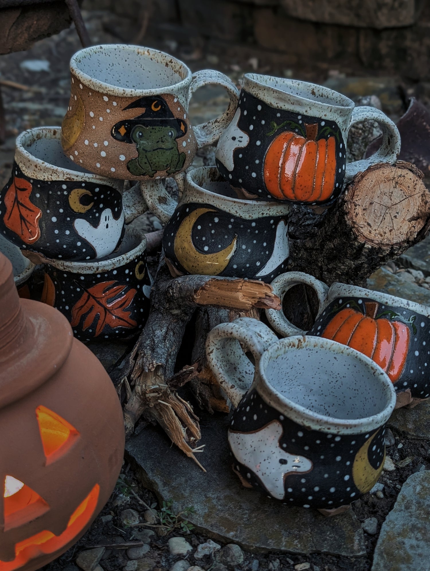 welcome to my cosy side of the internet! my name is hope and my dog is pippin. we love nostalgic 90s vibes, witchy themes, and all things Halloween. all cauldron mugs are made with Kentucky clay, and fired in an electric kiln with food safe glazes applied.